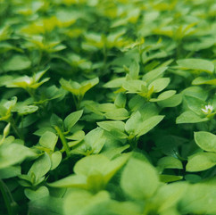 From left to right: bugleweed, nettle, chickweed, and cleavers